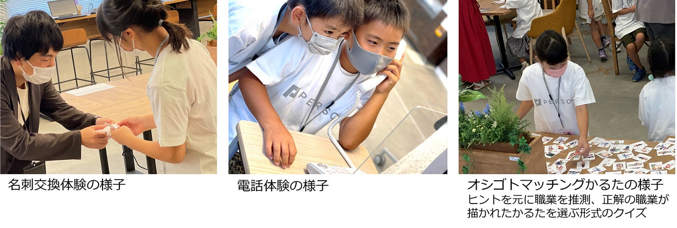 子どもたちに「親がはたらく会社を知ってもらい、楽しんでもらいたい!」を目的として、2017年より年数回開催している「子どもはたらくスマイルプロジェクト」。今回は、初開催の福岡県久留米市のオフィスにて、社員の子どもたち17名が参加しました。3日には”オリジナル名刺作成と名刺交換体験” ”電話やテレビ通話体験” ”オシゴトマッチングかるた”などのコンテンツを通してはたらくを体験し、4日は縁日として射的や輪投げなどを楽しみました。期待を膨らませてオフィスに訪れた子どもたち、初めての名刺交換や電話体験を緊張しながらも一生懸命に取り組む姿や、オシゴトマッチングかるたに笑顔で参加する姿が印象的なイベントとなりました。