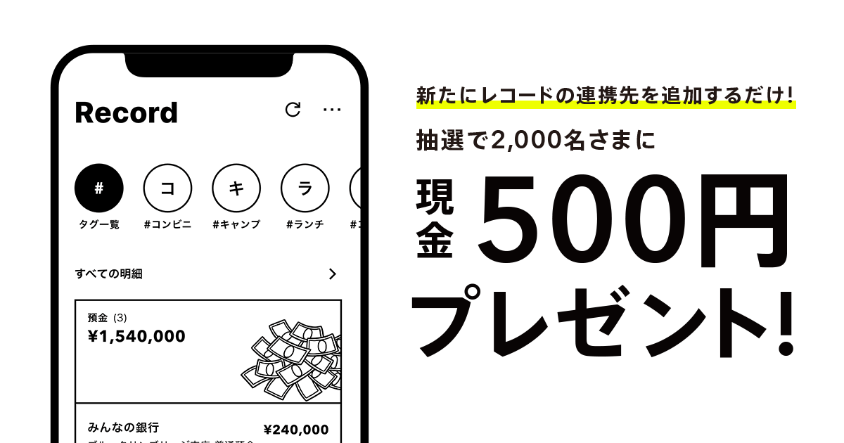 レコード機能で証券口座が連携可能に!抽選で現金500円が当たる記念キャンペーンを実施