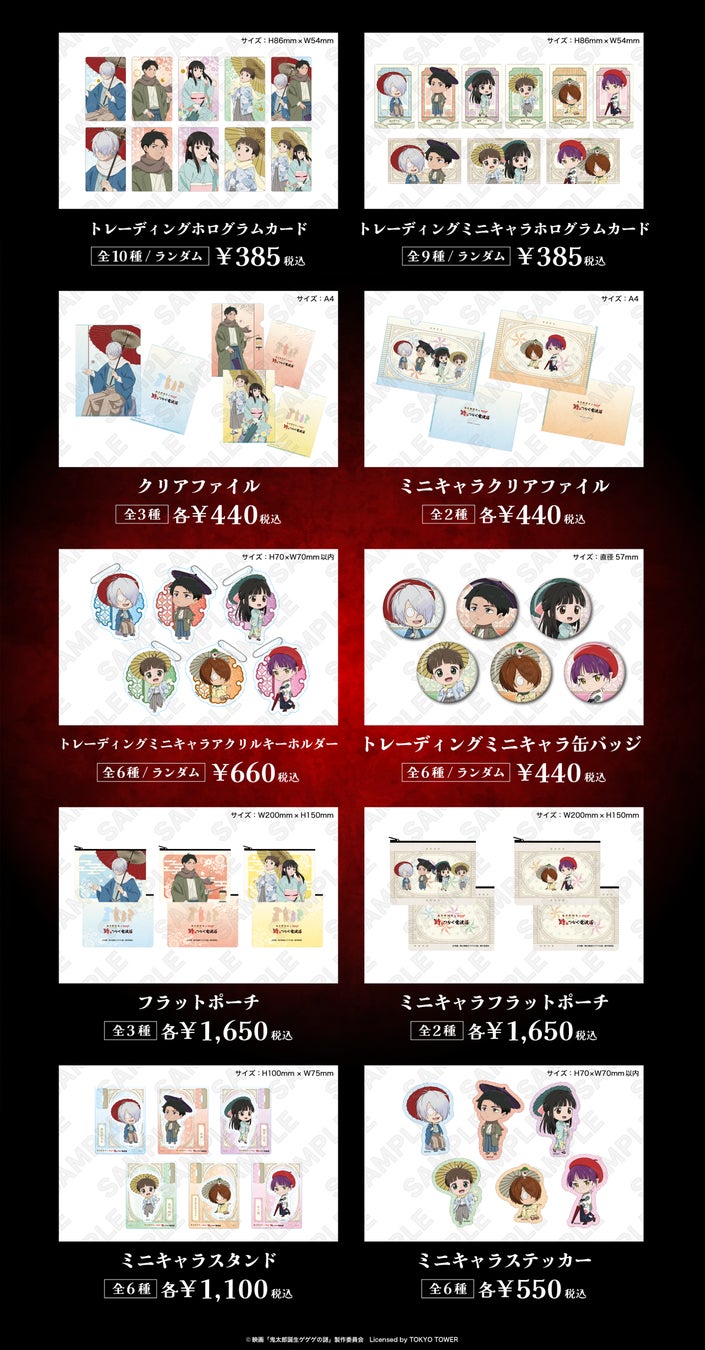 イベント限定の描き下ろしグッズが登場!可愛いSDイラストグッズの他、建設途中の日本電波塔こと東京タワーのイラストを使ったコラボグッズも。イベント限定グッズ2,000円以上ご購入の方にプレゼントする限定特典ブロマイドは前期5種、後期6種で絵柄が変わります。
