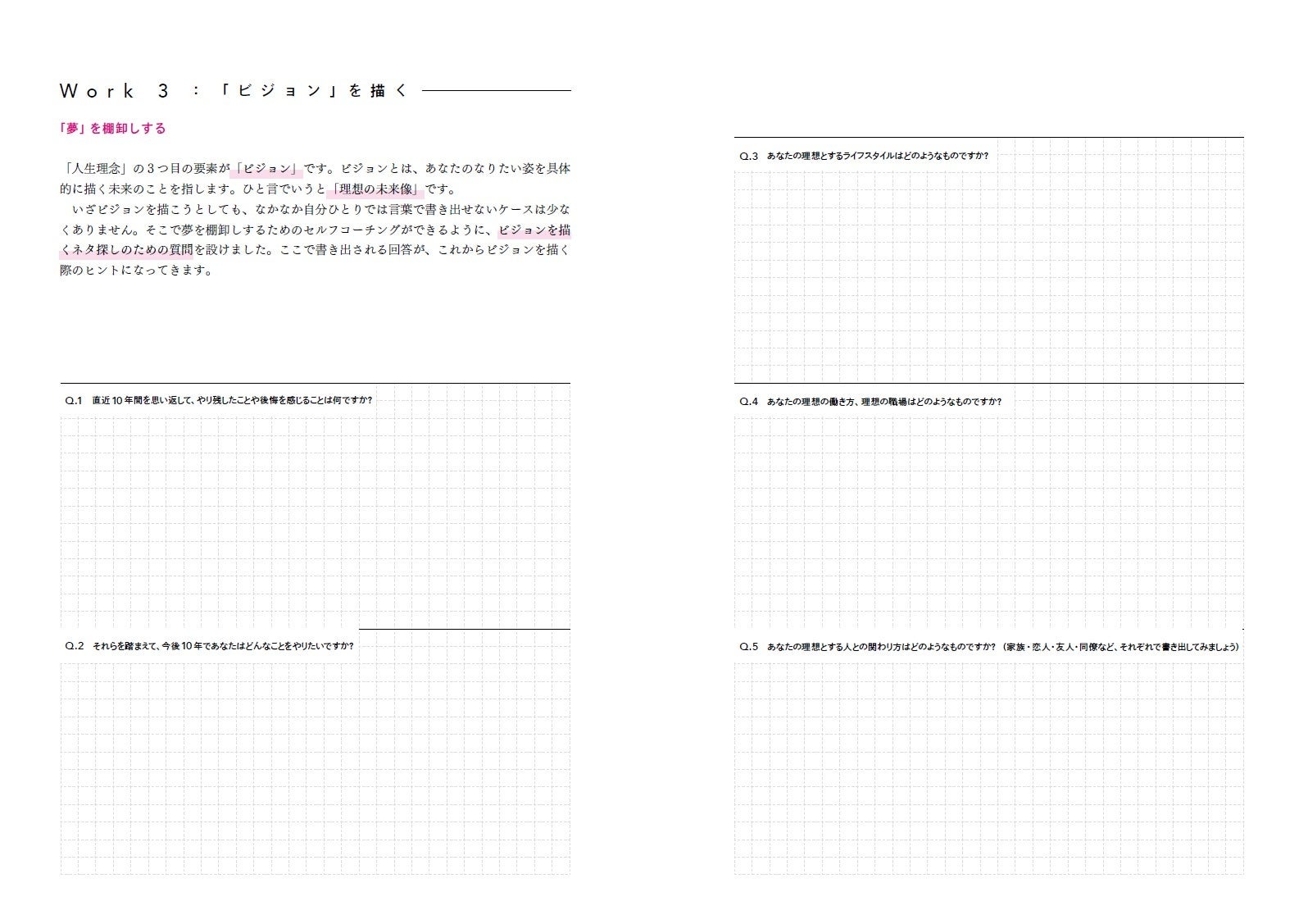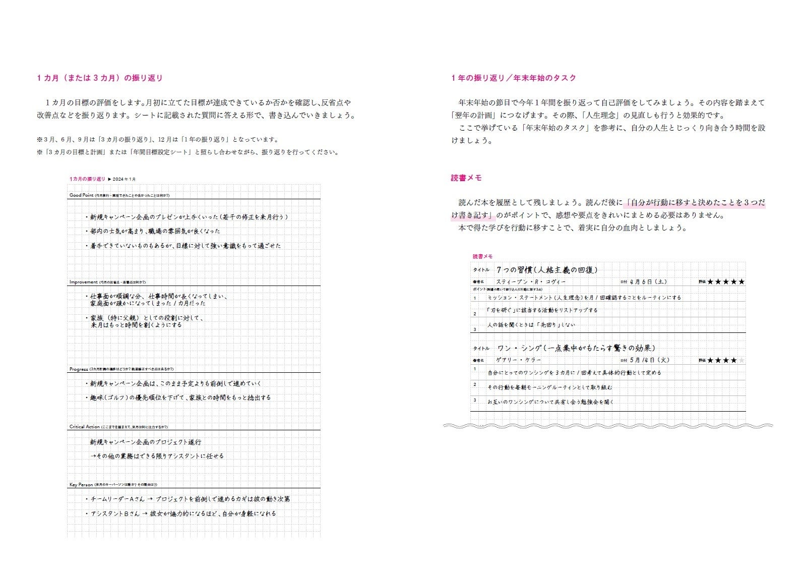 という流れで、自身と向き合い高みを目指せる手帳です。