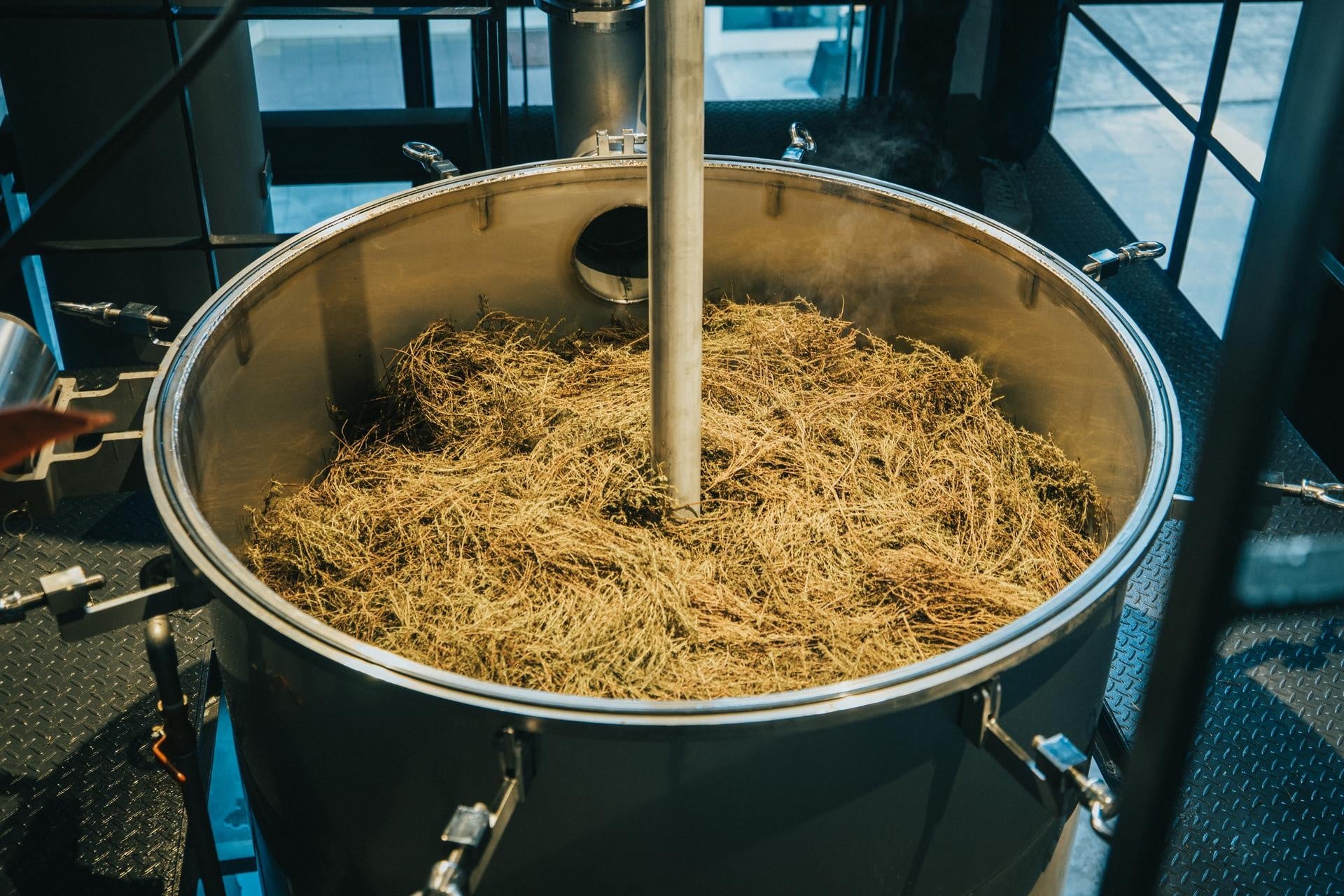 自社ハーブガーデンで育てた植物を収穫し、蒸留所へ搬入します。採れたてのハーブならではのフレッシュな香りが蒸留所内に広がります。