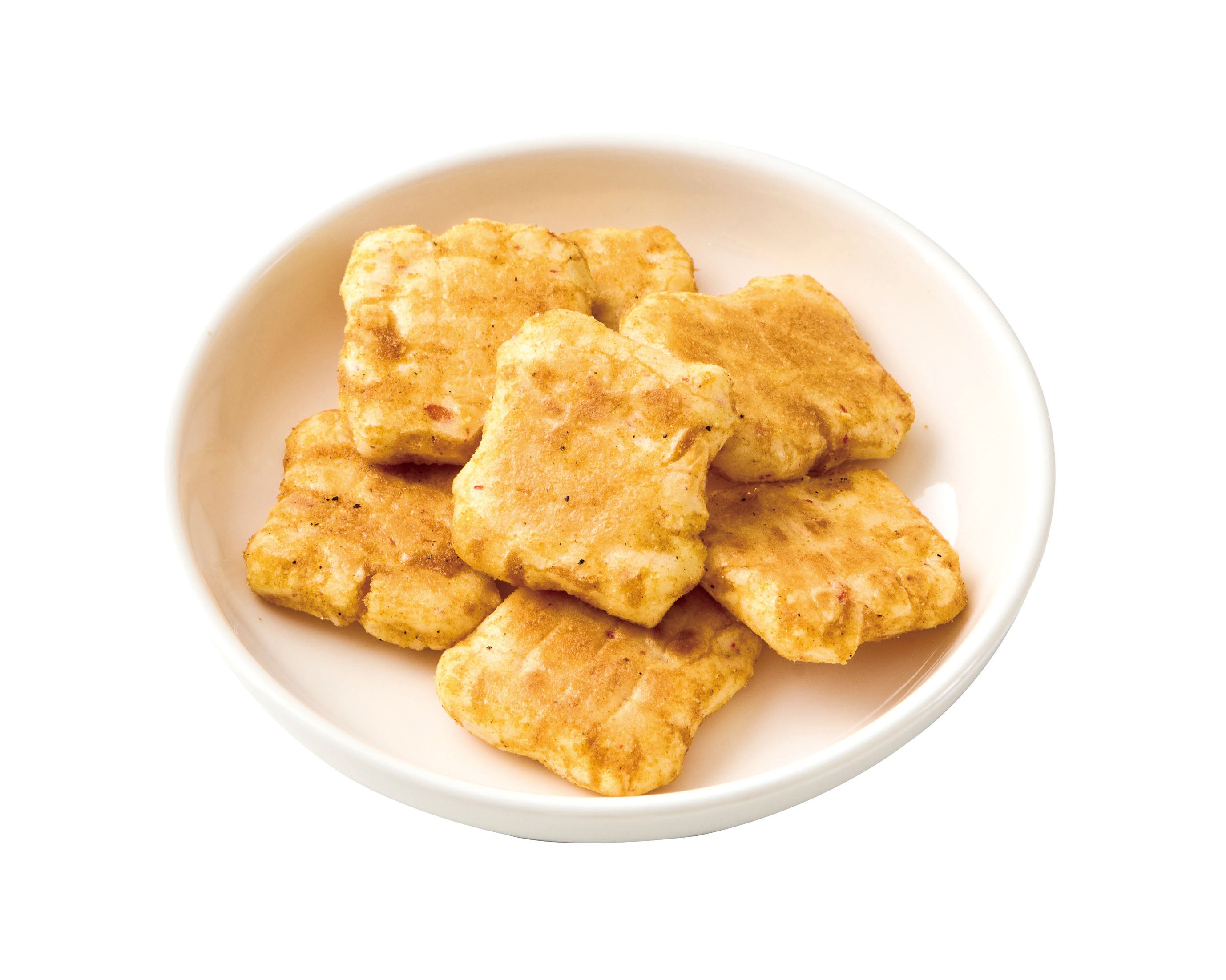 ぎゅっと凝縮した海老の旨味と控えめな辛さが食欲をそそる人気の「海老カレー」を、ひとくちサイズのカレーせんで表現。うるち米ともち米を合わせたさくふわ食感の生地に海老を練り込むことで、香ばしい風味をより引き立てています。