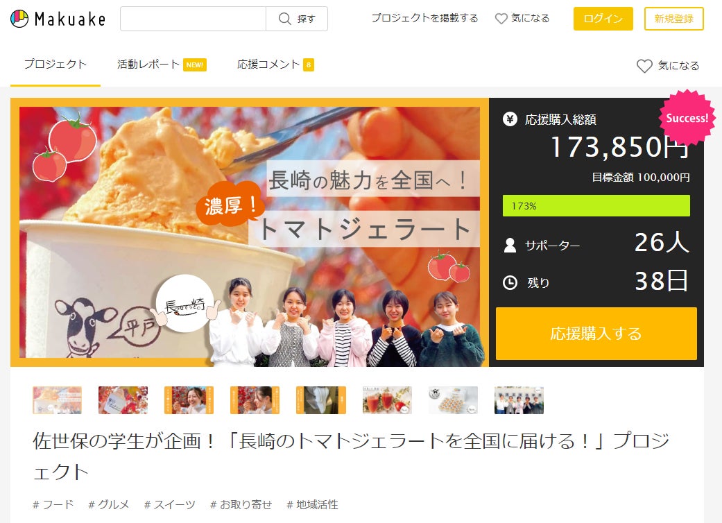 広くこの取組みを知ってもらい、トマトジェラートを味わってもらいたいという思いから、応援購入サービス「Makuake」にてプロジェクトを公開しました。