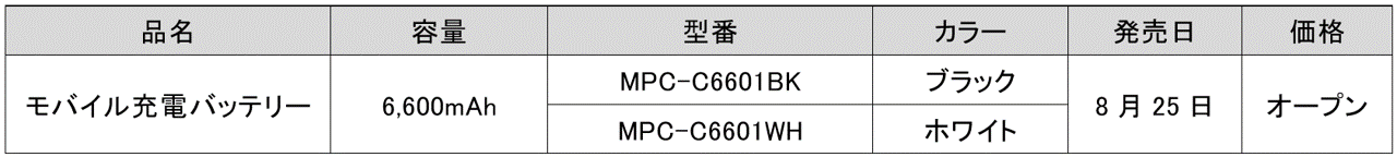 *1 前モデル: モバイル充電バッテリー MPC-C6700P