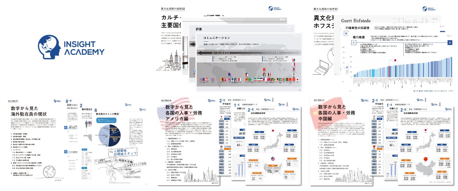 インサイトアカデミーでは、⼈事/海外事業部ご担当者様を対象とした無料レポート/資料を多数ご⽤意しております。ぜひ貴社の海外事業/グローバル⼈材育成計画策定にお役⽴てください。