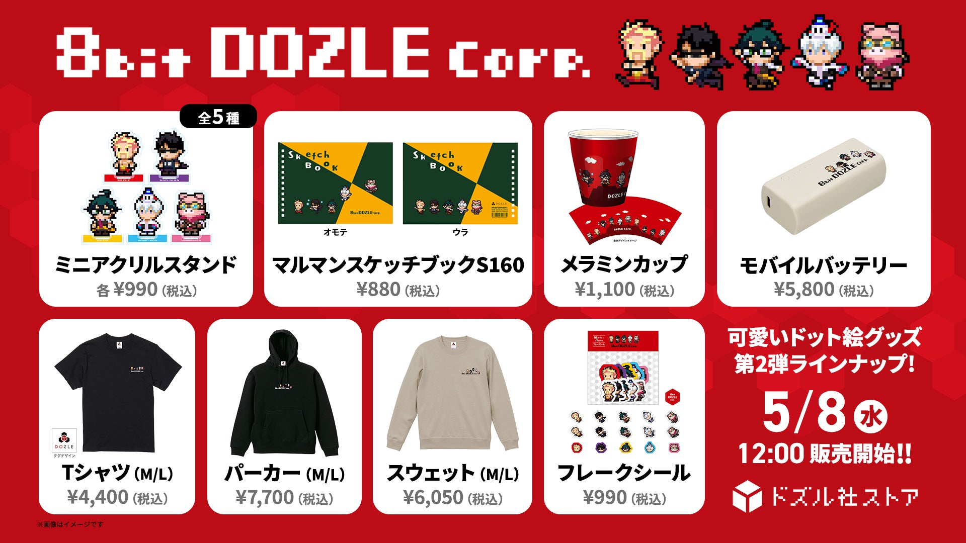 株式会社ドズル(以下、ドズル社 本社:東京都品川区、代表取締役社長:ドズル(YouTubeクリエイター))は、ゲーム実況グループ「ドズル社」のメンバーがドット絵の姿になったグッズ『8bitドズル社』シリーズ第2弾を発売します。