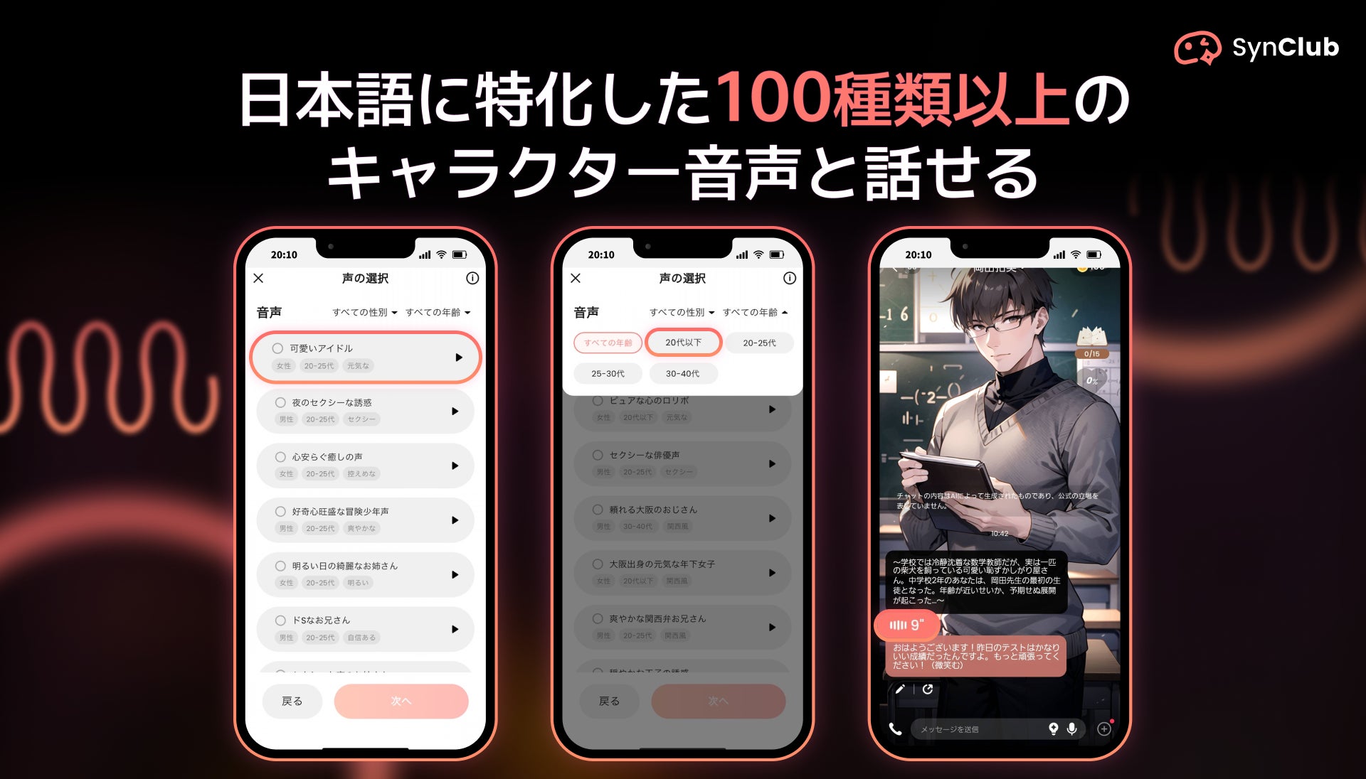 今話題のAIチャットアプリ「SynClub」より日本語に特化したキャラクター音声を100種類以上リリース!