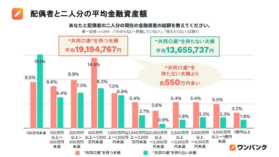 【夫婦の共同口座と家計の実態調査】 生活費や貯蓄をふたりで管理する“共同口座”を持つ夫婦の金融資産、持たない夫婦より550万円多い
