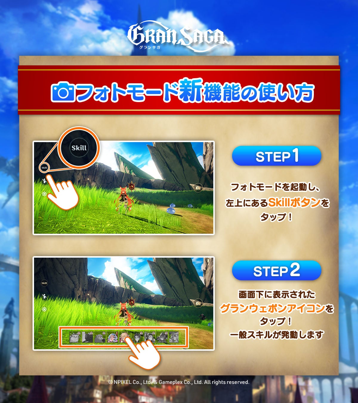 また、フォトモードへの新機能追加により、現在の所持有無にかかわらず獲得したことのあるグランウェポンのスキルが全て活性化されます。