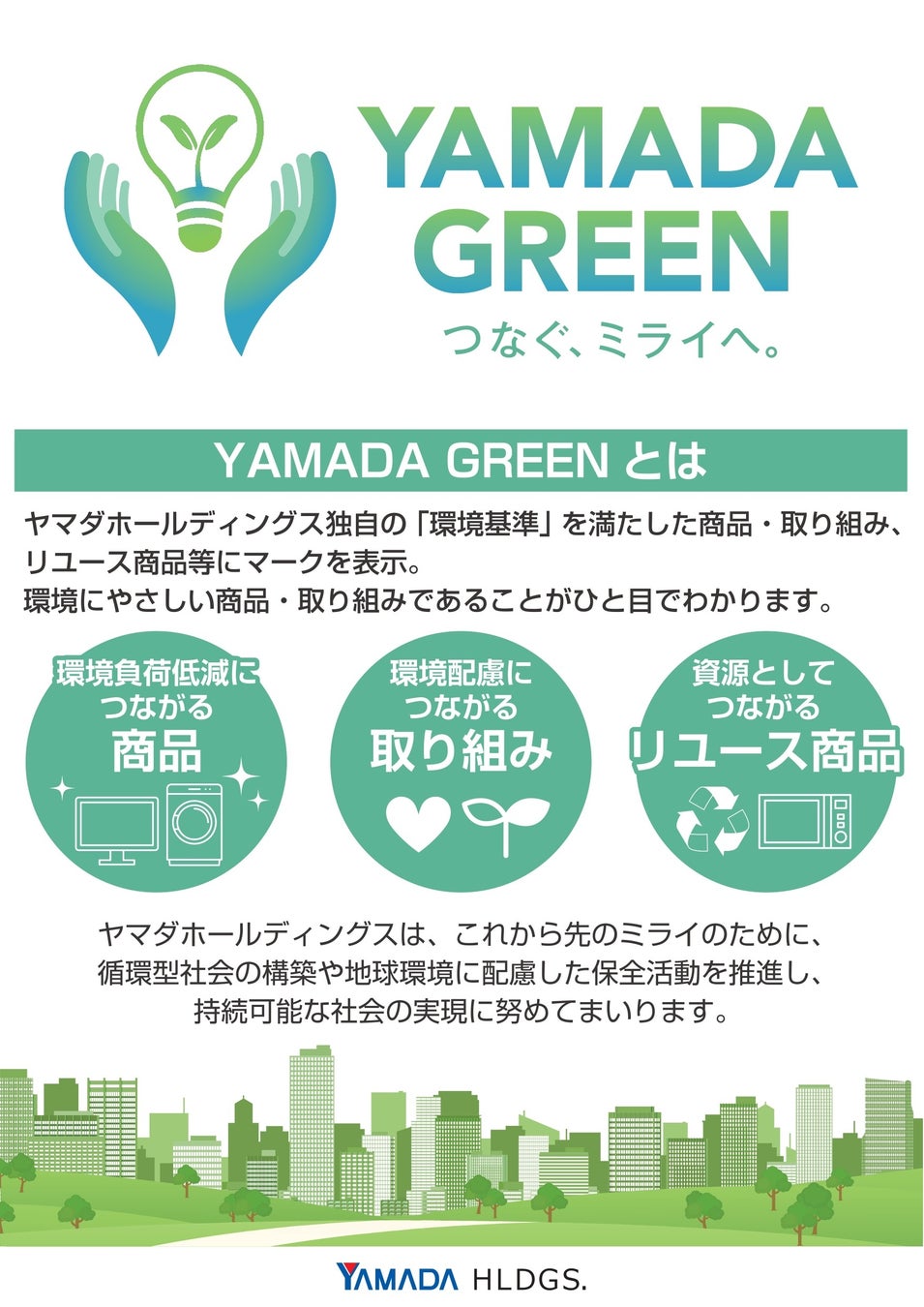 また、ヤマダホールディングスが行う環境への取り組みを皆様によりご理解いただくためのポスターを掲示、今後、この取り組みを全国の店舗に拡大し、持続的な社会のための取り組みを推進します。