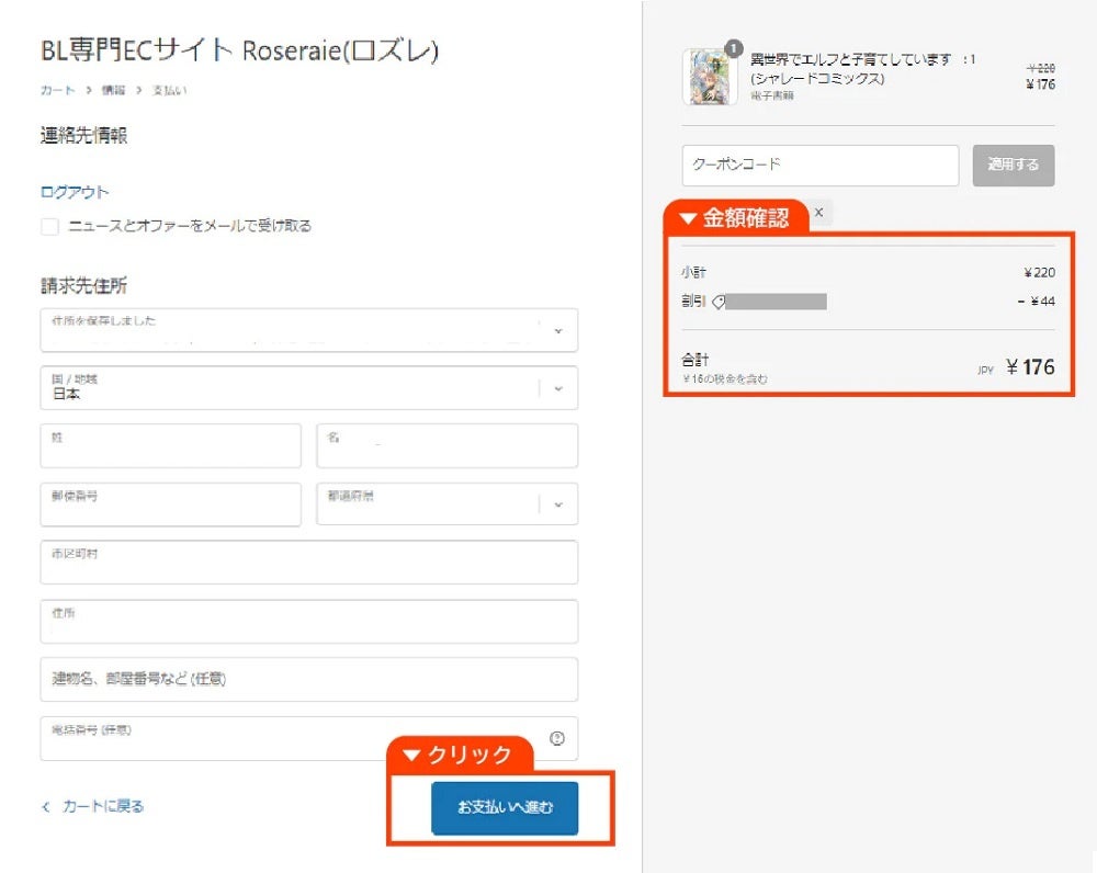 step4 クーポンが適用された金額が表示されます。