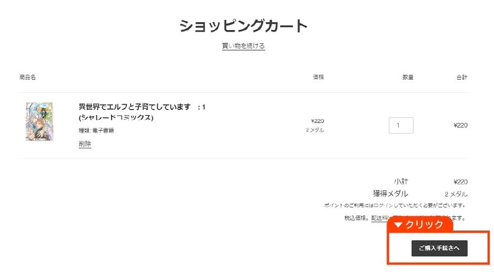 step2 カートを確認し「ご購入手続きへ」をクリック