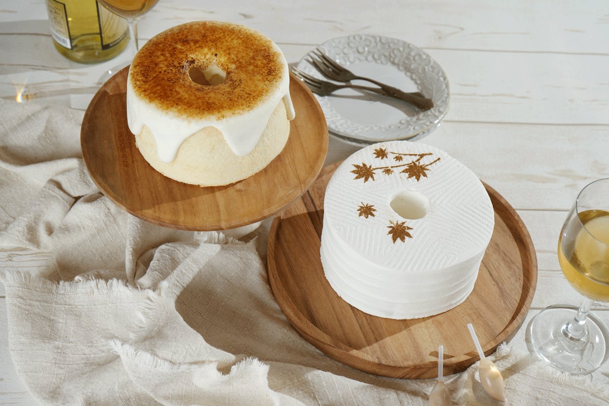 「Brand Collab Set 2023」は、王様のシフォンBruleeのモチーフとなったThis is CHIFFON CAKE.のケーキ「Brulee」と、秋限定シフォンケーキ「Earl Grey CHIFFON【MOMIJI】」の特別セットになります。