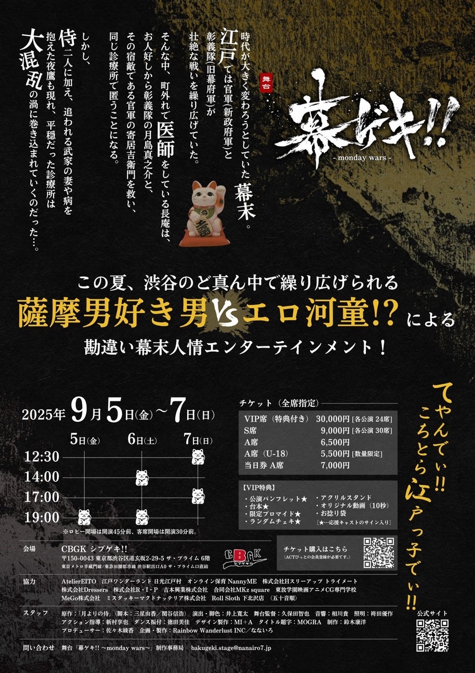 舞台『幕ゲキ!! ~monday wars~』は、2025年9月5日(金)から9月7日(日)までCBGKシブゲキ!!にて上演予定です。