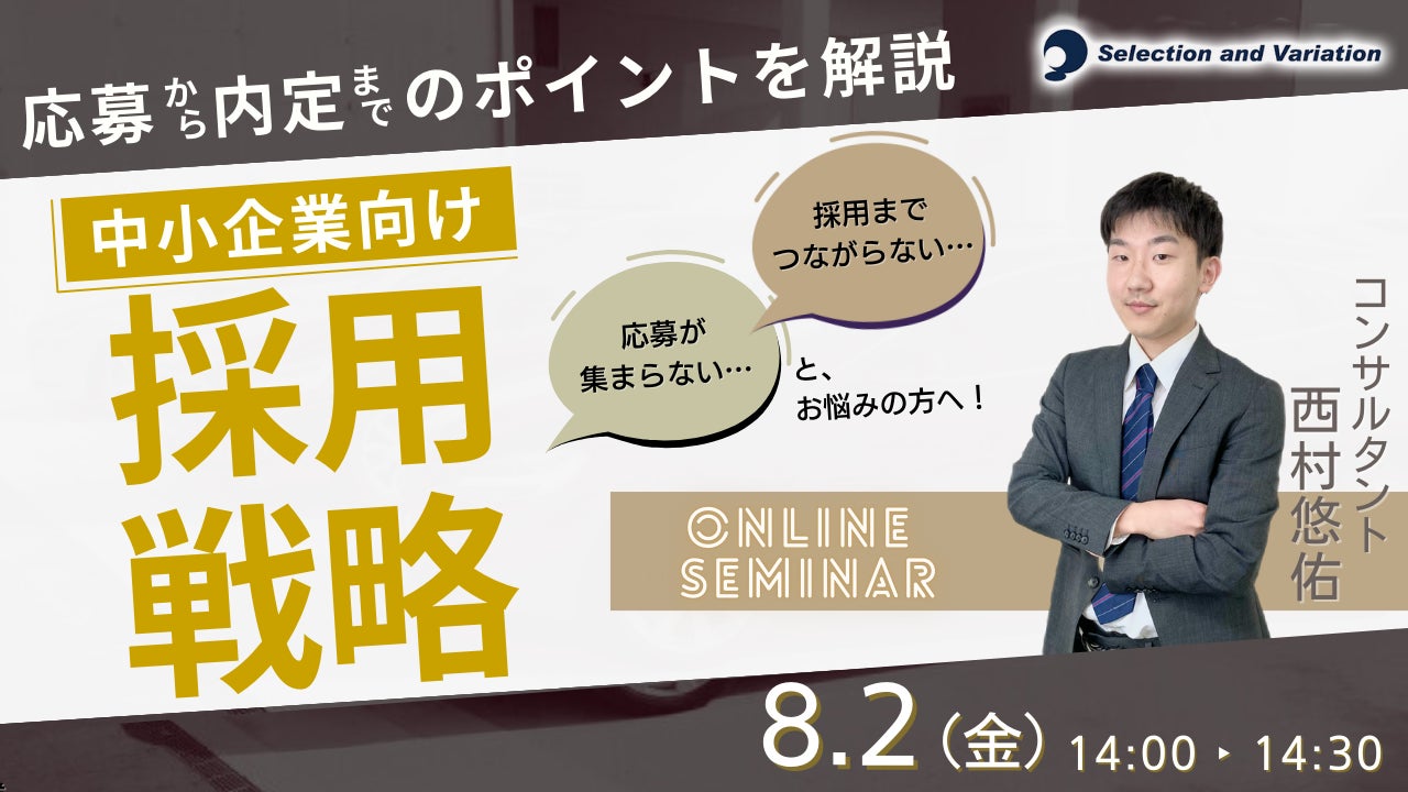 【応募から内定までのポイントを解説】中小企業向け採用戦略セミナー【8月2日(金)14:00〜14:30】