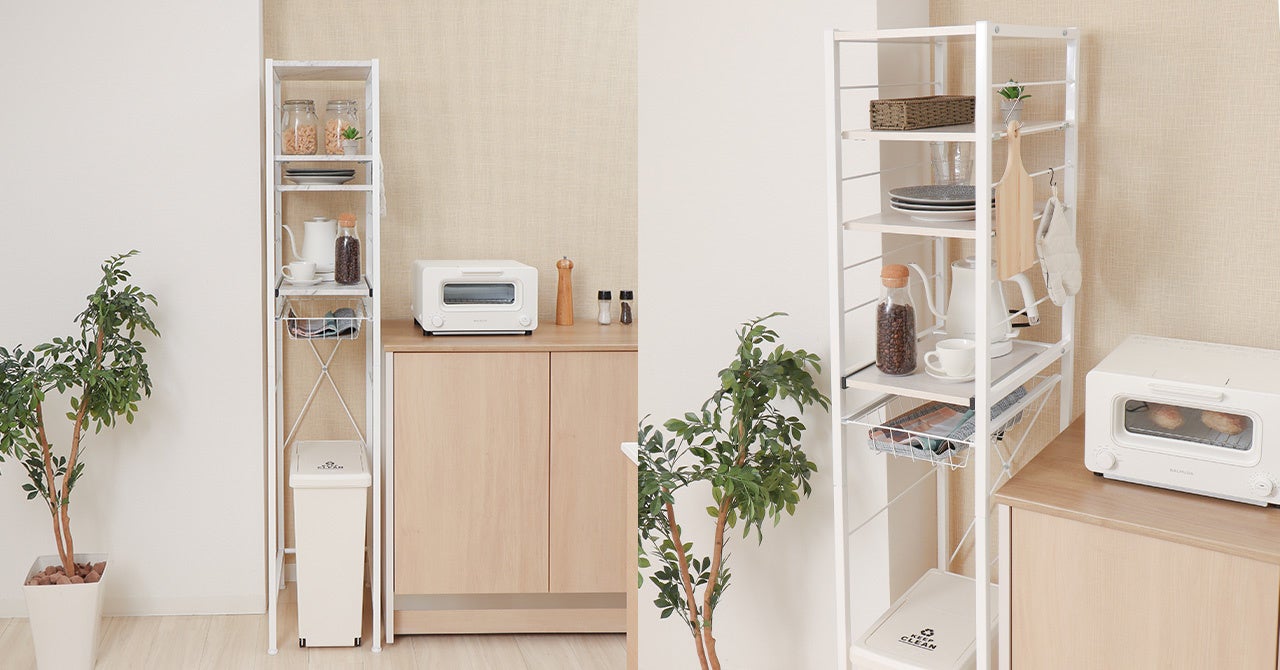 「ゴミ箱1個分の隙間におけるラックが欲しい」そんなお客様の声をもとに、 Echo (エコー)シリーズから幅約32cmの「スリムタイプ」が登場しました。ゴミ箱上のスペースを有効活用できる便利なラックです。