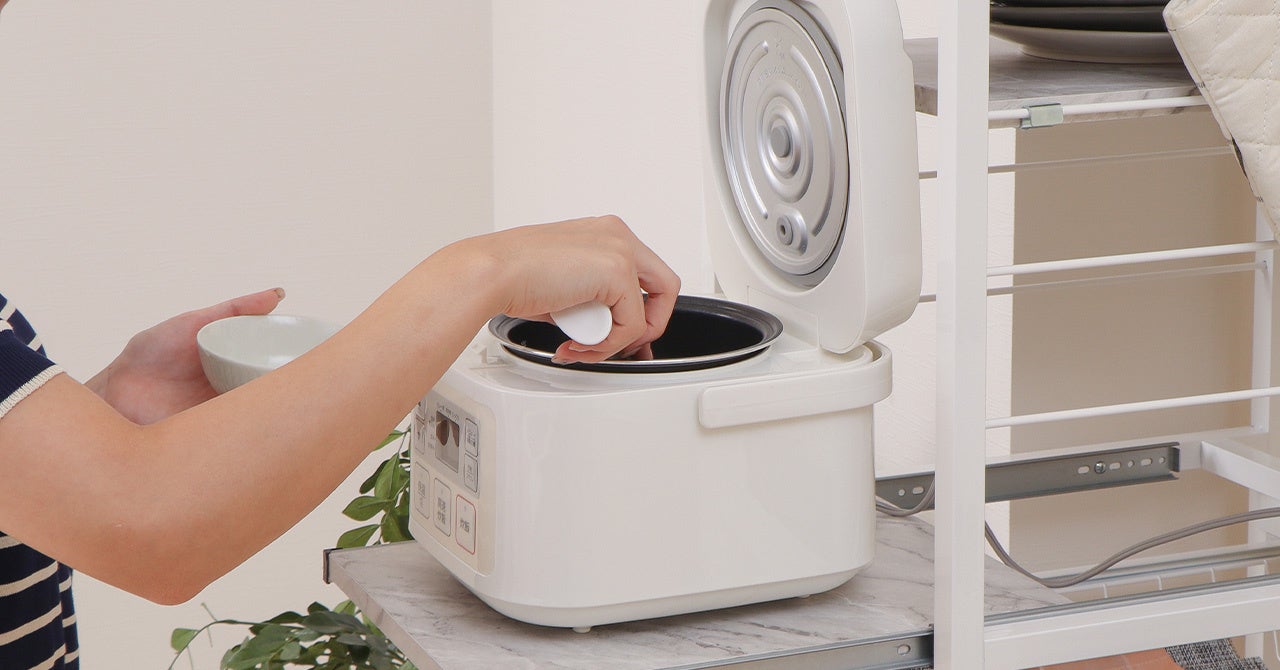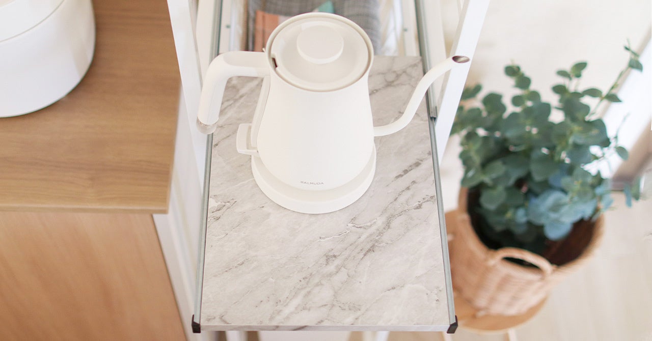 <スライドレール棚>蒸気が出る炊飯器や湯沸かしケトルなどが置けます。