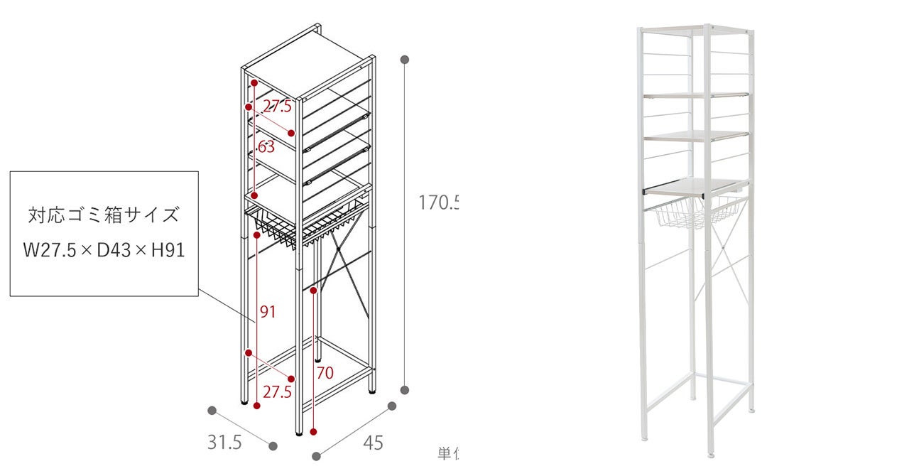 「ヤマソロ」ゴミ箱1個分の隙間を有効活用できるラックが登場