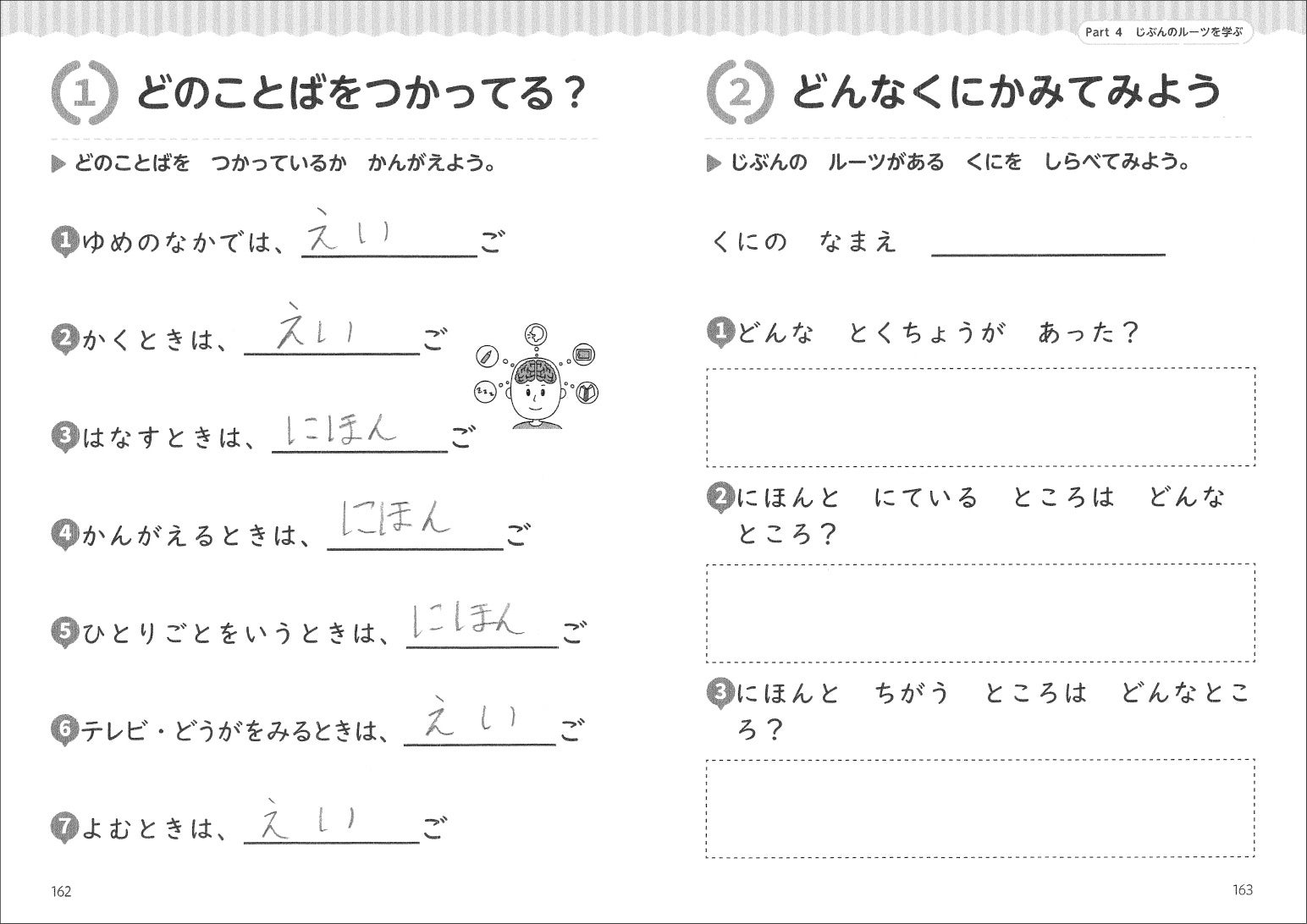 ひらがな・カタカナの読み書きから、ソーシャルスキル、自分のルーツを知ることまで、大人といっしょでも、お友だちといっしょでも、クイズ感覚でたのしみながら日本語が身につく1冊です。