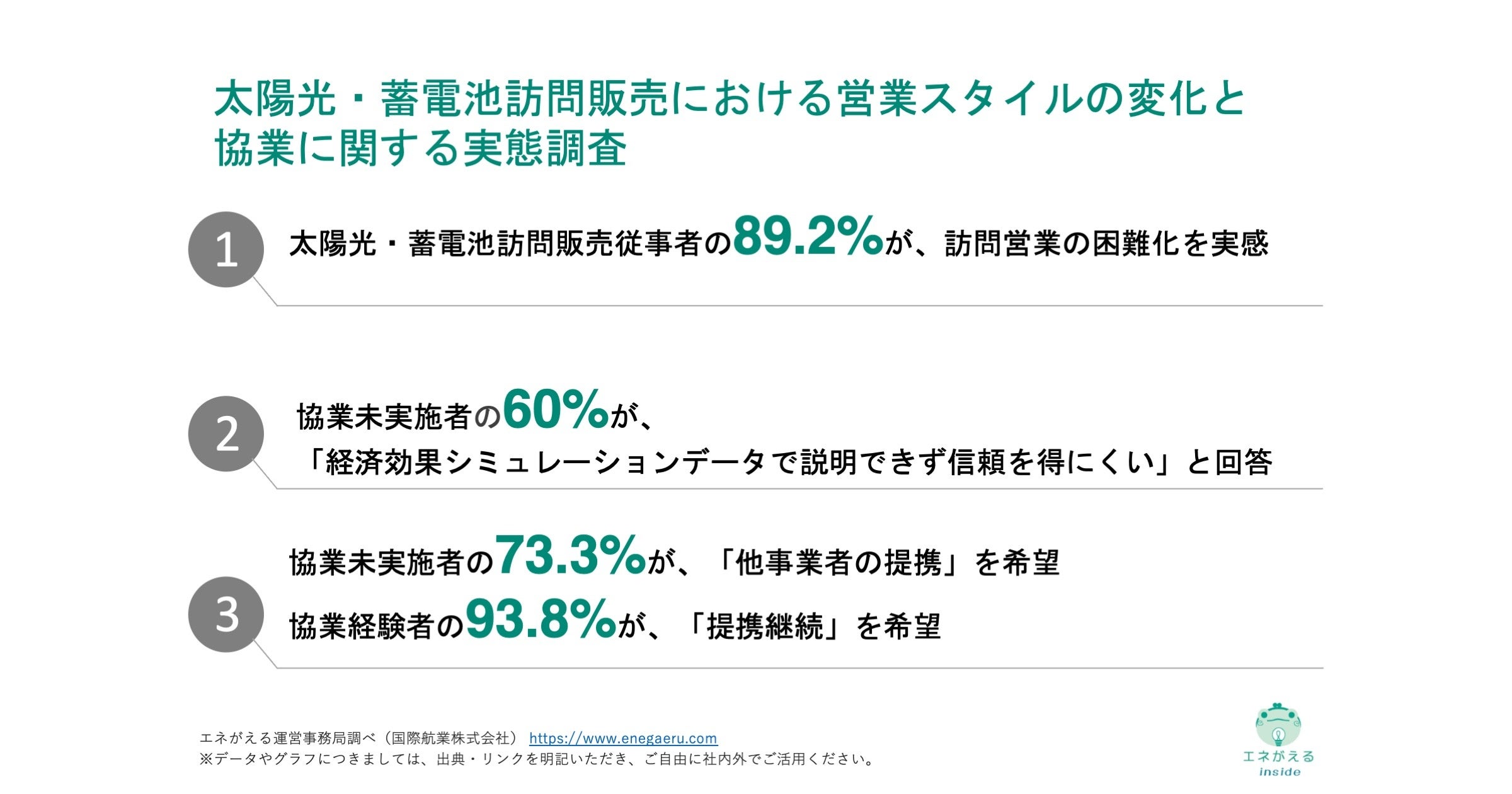 [独自レポートVol.36]【太陽光・蓄電池訪問販売の実態調査】 89.2%が「営業困難化」を実感 訪問営業の限界と協業時代の到来