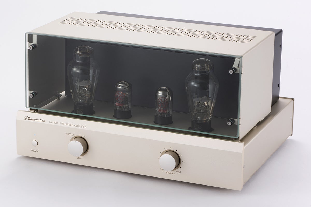 フェーズメーション初のプリメインアンプ「SA-1500」。最高峰モノラルパワーアンプ「MA-5000」のエッセンスを随所に投入し、真空管を “魅せる” 美しいデザインも評価されました。オール三極管構成で、真空管ならではの深い味わいはフェーズメーションがもっとも得意とするところです。