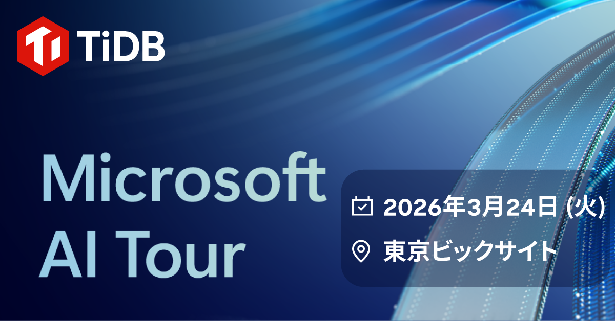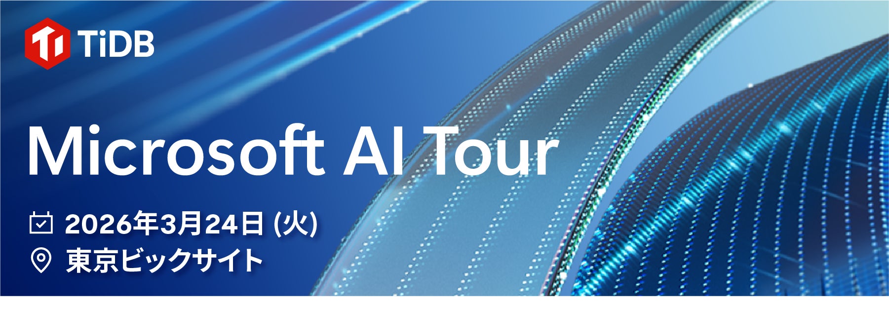 PingCAP株式会社 (本社:東京都千代田区、代表取締役社長:Eric Han、以下 PingCAP) は、2026年3月24日に開催される最新のAIイノベーションを間近で実際に体験できるイベント「Microsoft AI Tour Tokyo」に協賛します。本イベントでは、マイクロソフトのリーダーからAI分野における専門的なインサイトや最新動向を学ぶことができます。最新のAIテクノロジーを活用し、従業員エクスペリエンスの向上、顧客エンゲージメントの変革、そしてビジネスプロセスの再構築をどのように実現できるのかを考える機会となります。