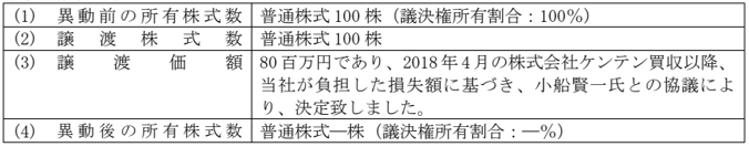 連結子会社(株式会社ケンテン)の株式譲渡及びオペレーション事業からの撤退並びに特別利益の計上に関するお知らせ