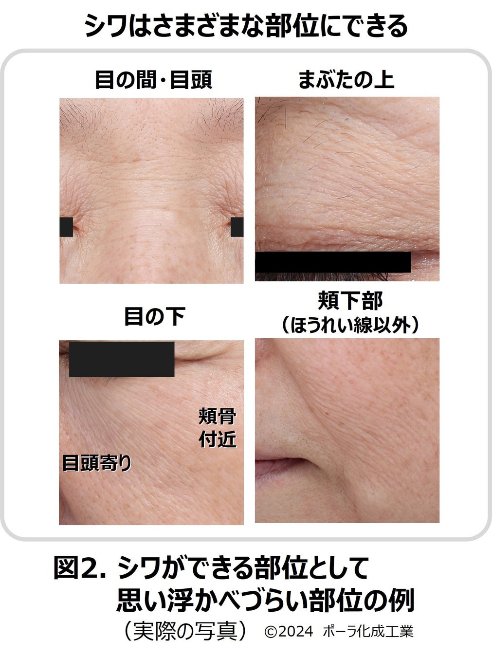 顔の多くの部位がシワができるとは思われていないことが明らかに
