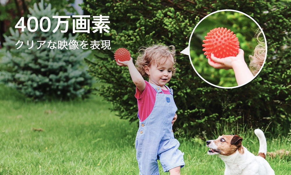 ・高画質400万画素:一般的なフルHDと比べ、さらに高精細かつ明瞭な撮影が可能