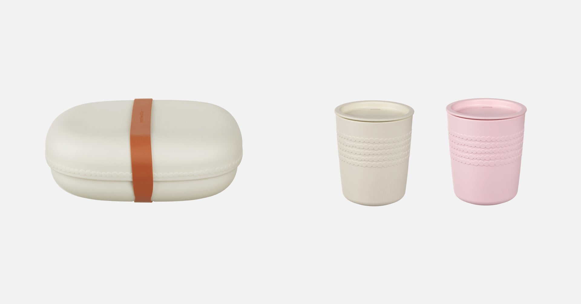 本体に生物由来のバイオポリマーや天然由来の粘土鉱物を使用したスラパック(Sulapac)製のアイテムも登場。スラパック製アイテムの第一弾としては、マイヤ・ロウエカリ(Maija Louekari)がデザインしたラシイマット(Rasymatto/使い込まれたラグ)柄の一部を立体的にあしらったランチボックスとタンブラーが登場します。
