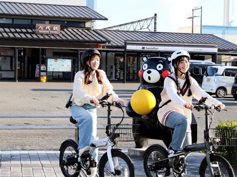 熊本県南部の八代市では、クルーズ船の受入拠点となっている「くまモンポート八代」をはじめとして、街中のいたるところに色んな表情、ポーズのくまモンの像「くまモンのファニチャー」が設置されており、まさに「くまモンのまち」と言えます。この八代市で、 電動アシスト付のおしゃれなミニバイクにまたがって、100体を超える(2023年3月末時点)くまモンに出会う探検へ出かけるプランです。