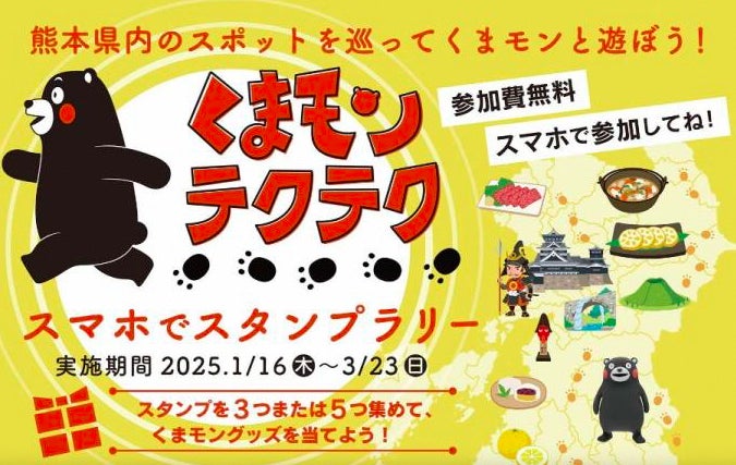 スマホで参加できるスタンプラリー「くまモンテクテク」開催中