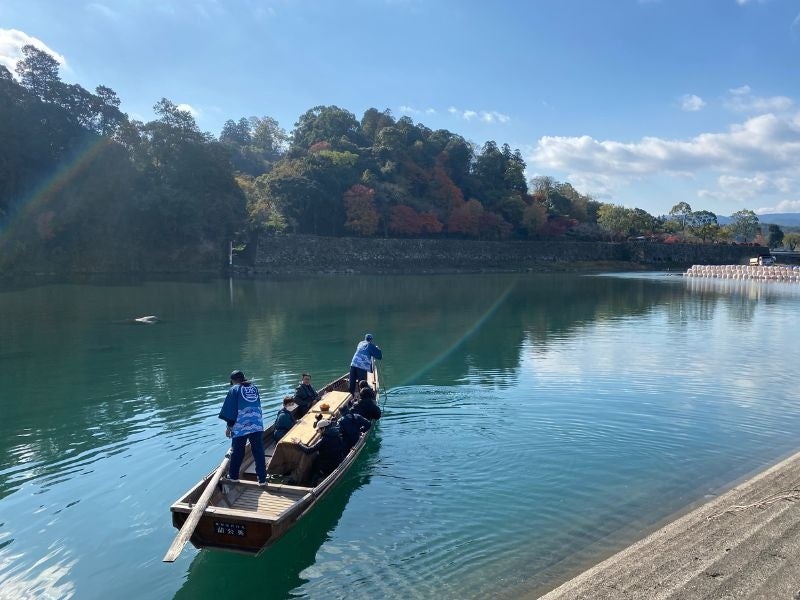 舟の中にテーブルを置いてふとんをかけ、中に火鉢を入れて暖をとる「こたつ」を乗せた「こたつ舟」に揺られ、美しい景色と心地よい暖かさで癒されます。