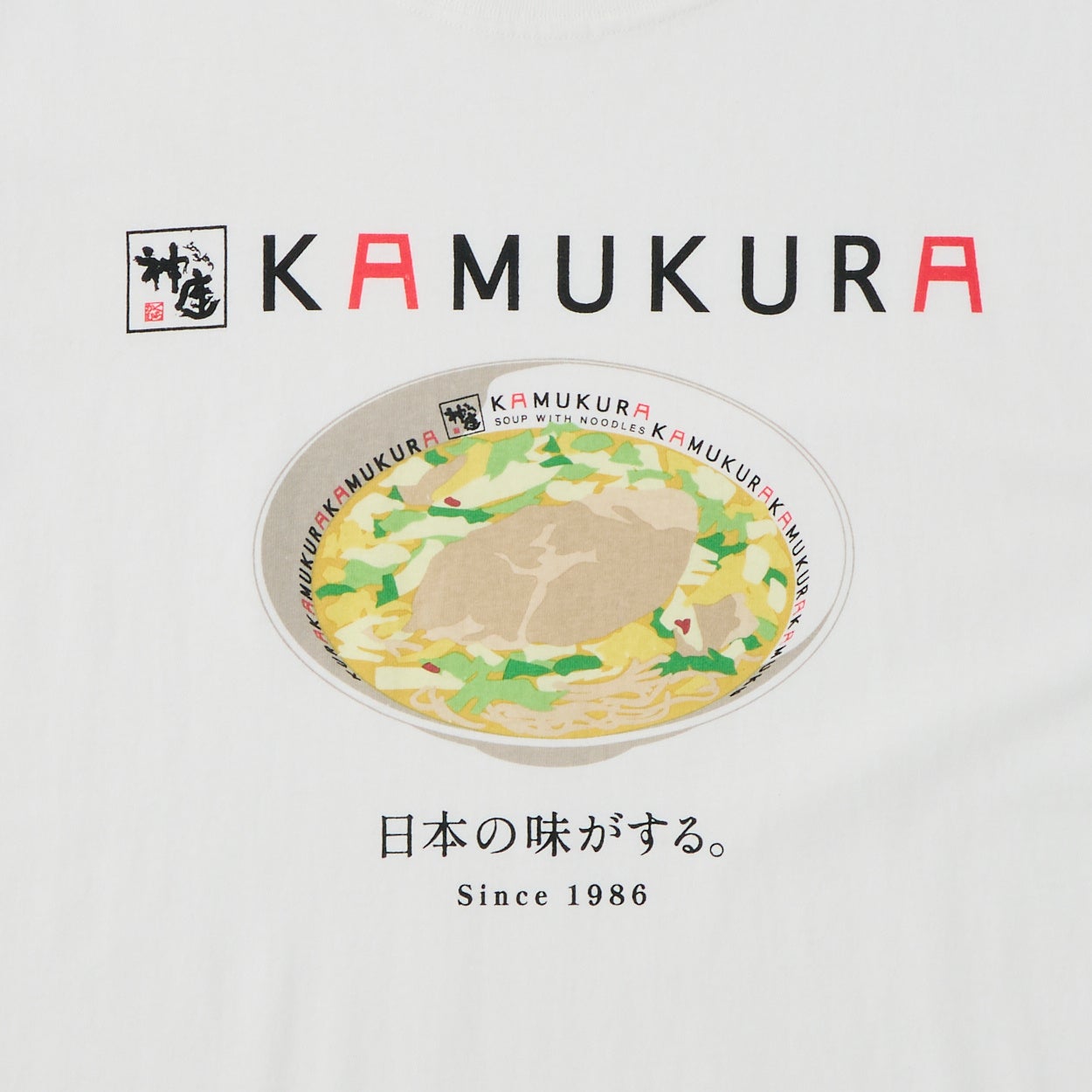 T シャツには、どうとんぼり神座の『おいしいラーメン』をモチーフに、たっぷりの白菜や、その旨味が染み込んだお出汁のように優しいスープなど、神座を象徴する一杯がデザインされています。