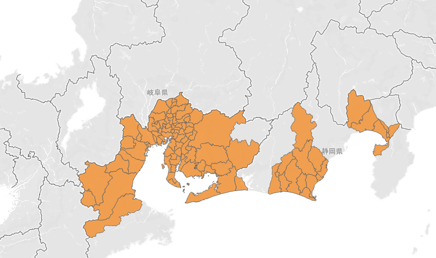 大阪・京都・兵庫・奈良・滋賀2府3県 107市区町