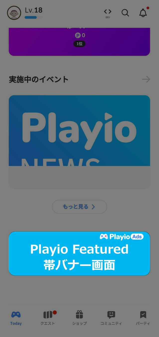 Playioアプリ内に設置された全7ヵ所の広告バナー枠において、ゲームタイトルのクリエイティブを最優先で表示できるプロモーションメニューです。
