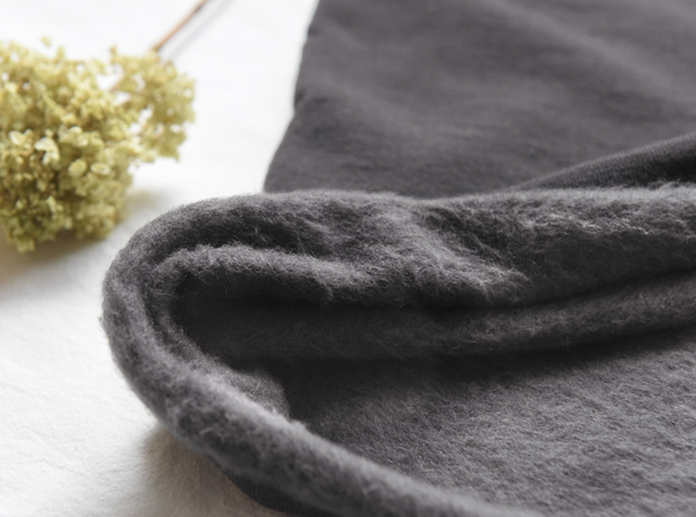 裏起毛の防寒インナーが数多ある中で、「もちはだ」シリーズが長くファンから愛される理由は、その独自の起毛製法。靴下の編機を改良した独自の編機により、一般の方法とは異なるオリジナルの起毛方法で、抜群の保温力とやわらかな風合いを叶えています。