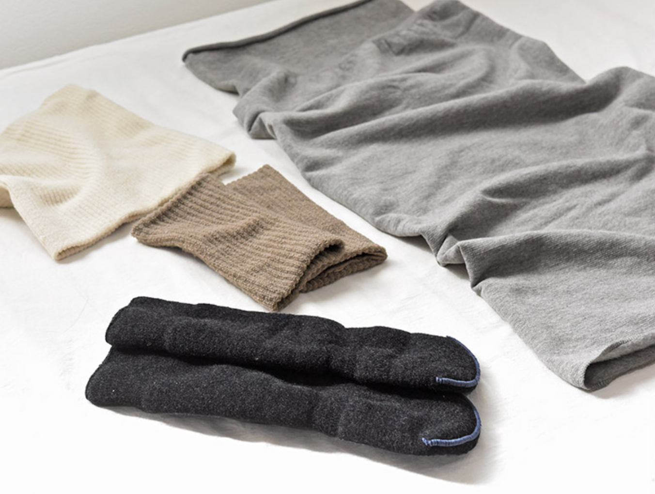 冷えやすい足元、お腹や腰回り、首周りを効率的に温められる、ボンモマンコラボのもちはだシリーズ。