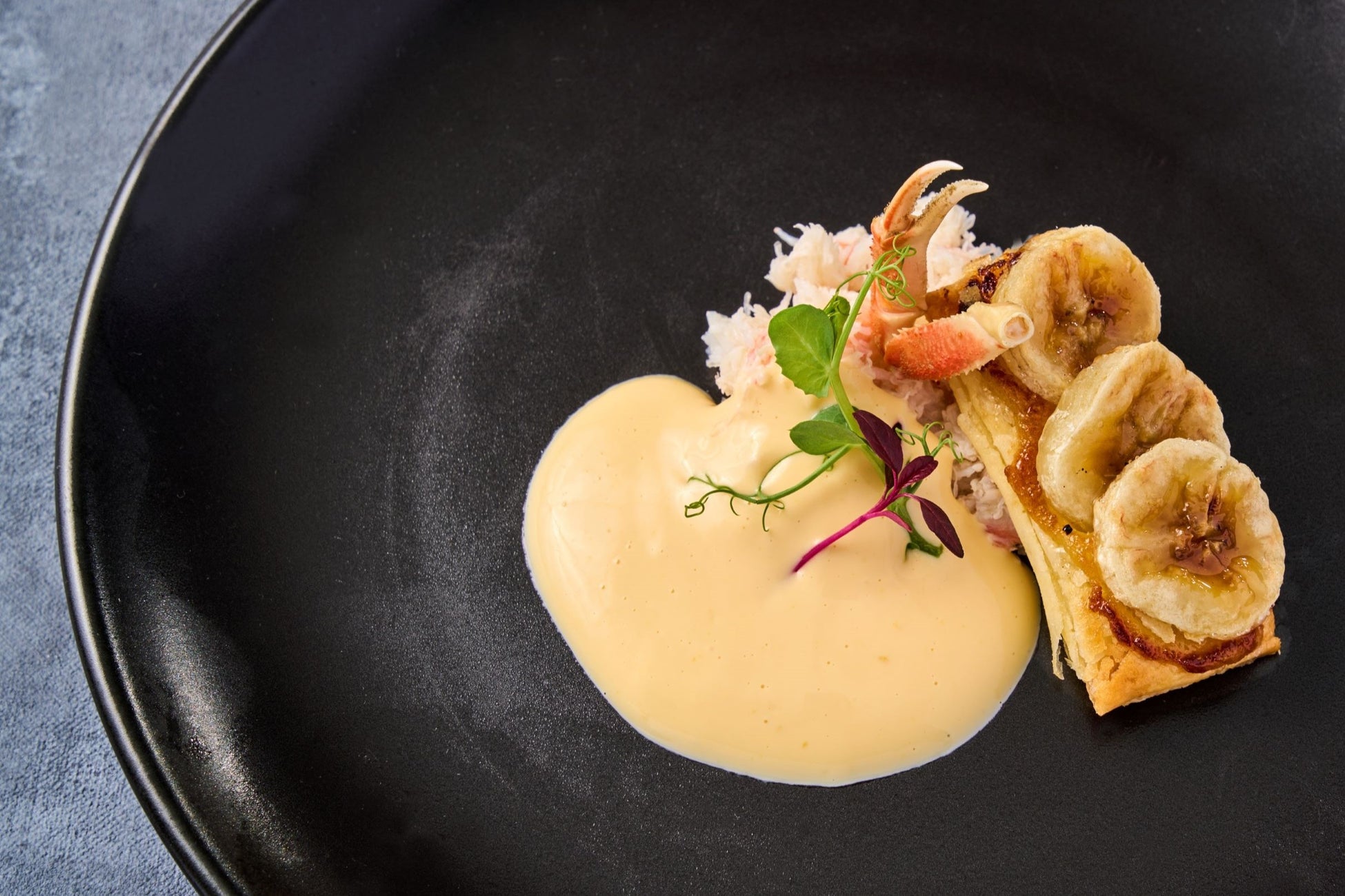 【前菜】香箱ガニとバナナのタルト カニみそ入りオランデーズソース