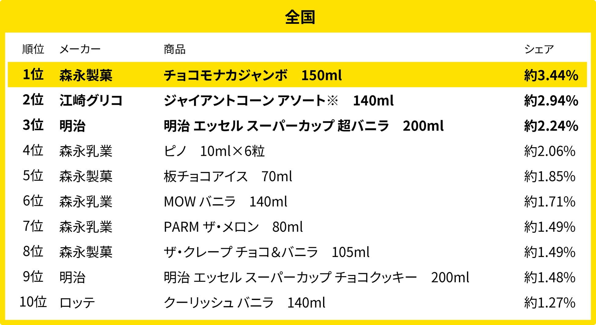全国1位は「モナカアイス」、乳成分の多いアイスが優勢!