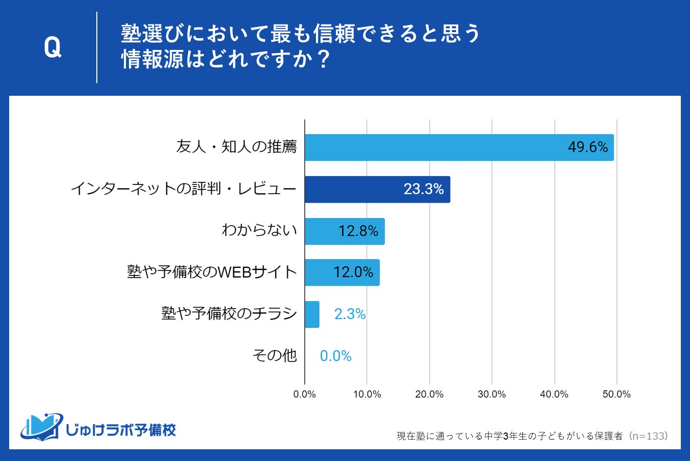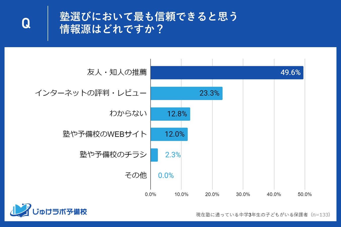 1位:49.6%が「友人・知人の推薦」を信頼!ダイレクトな口コミが塾選びの重要な決め手に