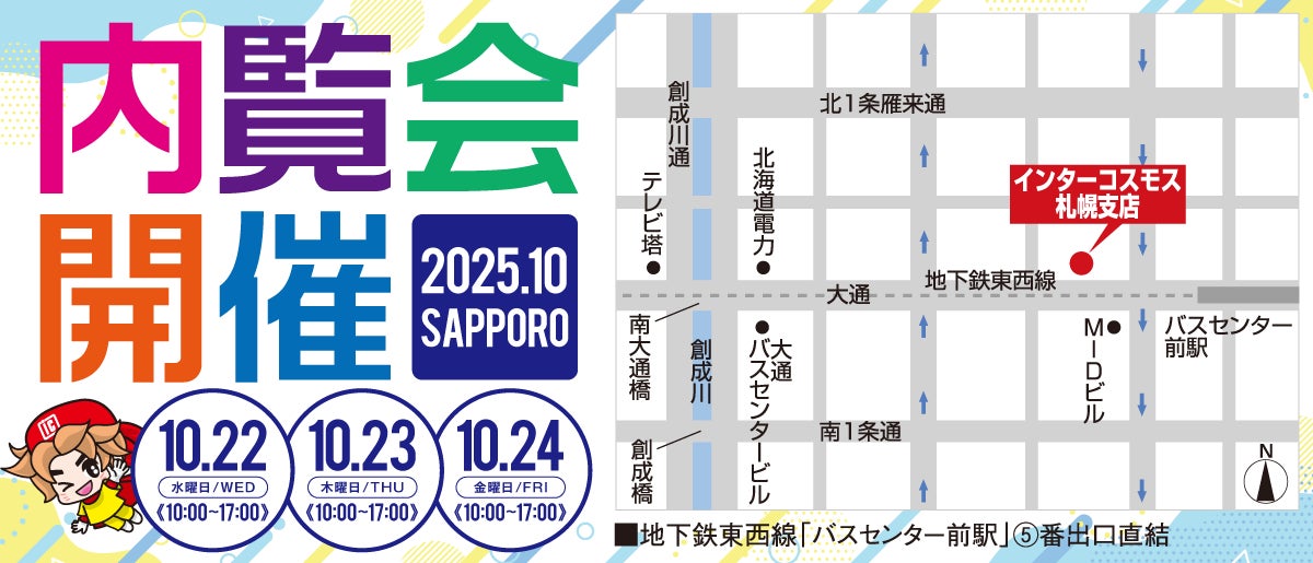 2025年10月22日(水)~24日(金)の3日間、インターコスモス札幌支店にて内覧会を開催いたします。