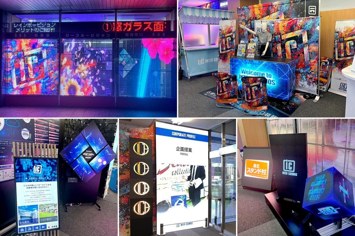 インターコスモス札幌支店では、普段から最新のサイネージやビジョン、イベントディスプレイを展示しておりますが、今回は内覧会ということで、いつも以上に気合を入れて準備をしております。