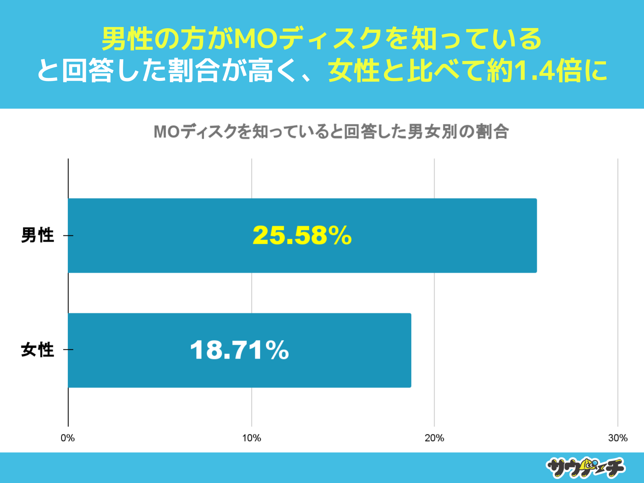 【男性の方がMOディスクを知っていると回答した割合が高く、女性と比べて約1.4倍に】