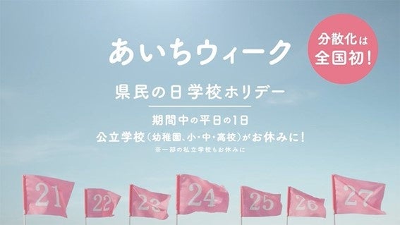 愛知県は11月27日の「あいち県民の日」を記念し、11月21日~27日を「あいちウィーク」と定め、県内各地で文化施設の割引やイベントなどを開催します。休み方改革推進の一環として、期間中の平日には学校休業日「県民の日学校ホリデー」と、親子で体験学習を行う機会も設けられています。