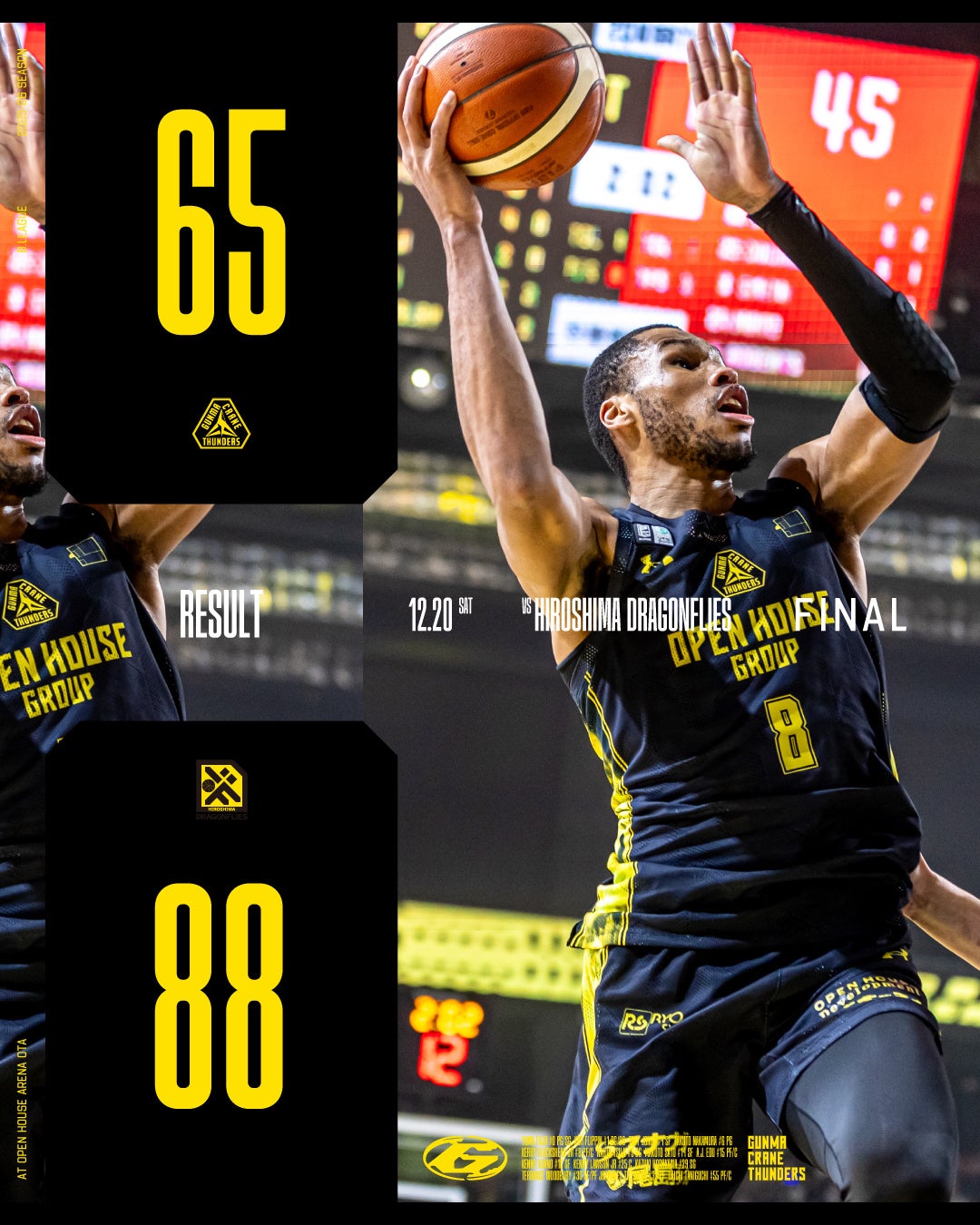 【群馬クレインサンダーズ:試合結果】12/20(土) vs 広島ドラゴンフライズ りそなグループ B.LEAGUE 2025-26シーズン