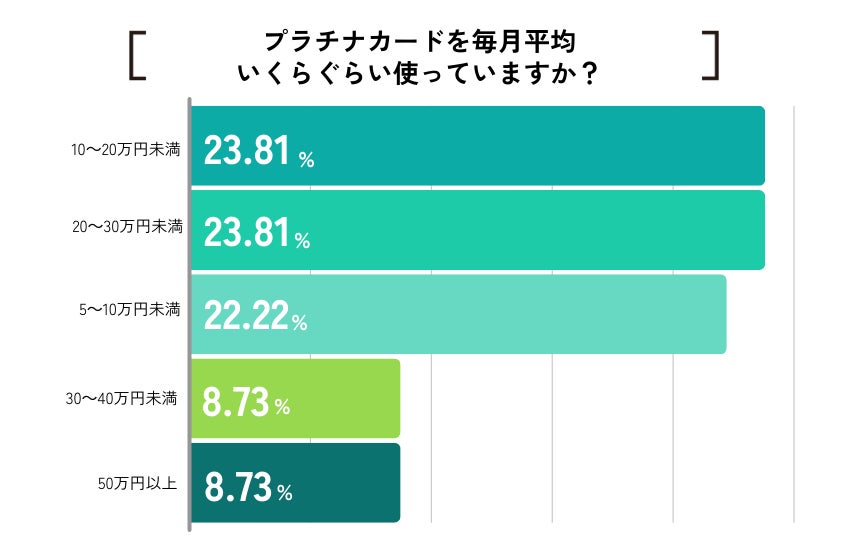 プラチナカードを持っている人の使用金額は、毎月平均「10~20万円未満」「20~30万円未満」が23.81%と最多だった。