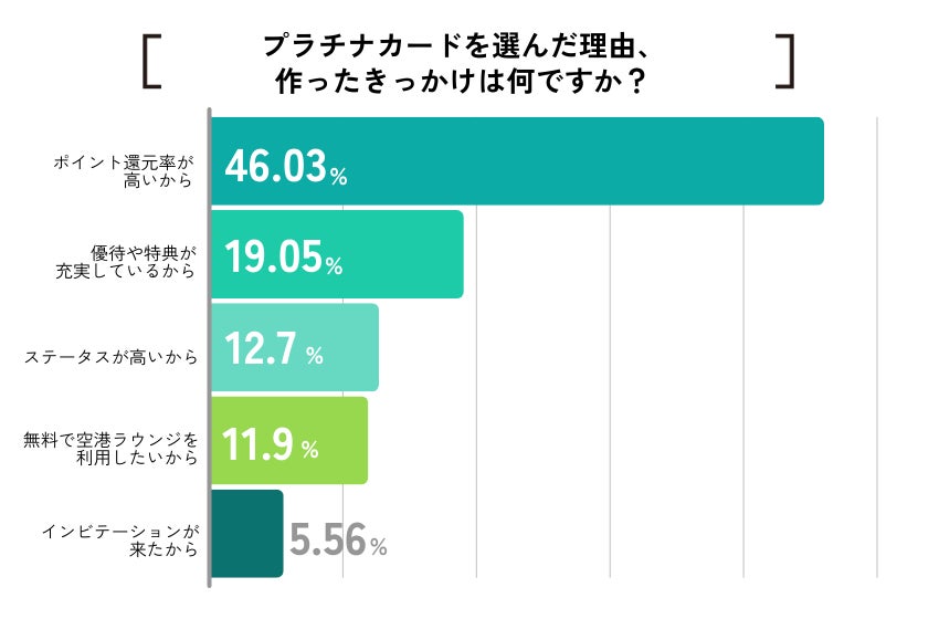 プラチナカードを選んだ理由や作ったきっかけとして、「ポイント還元率が高いから」と回答した人が46.03%と最多だった。