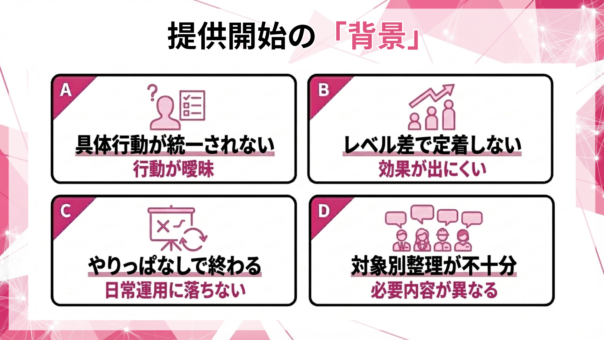 「知識」ではなく、業務の中で再現できる行動に落とし込みます