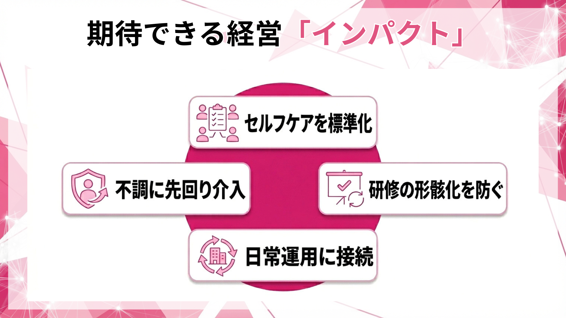 企業としては、セルフコンディションを「共通言語」と「具体行動」に落とし、継続運用できる形に整備する必要があります。